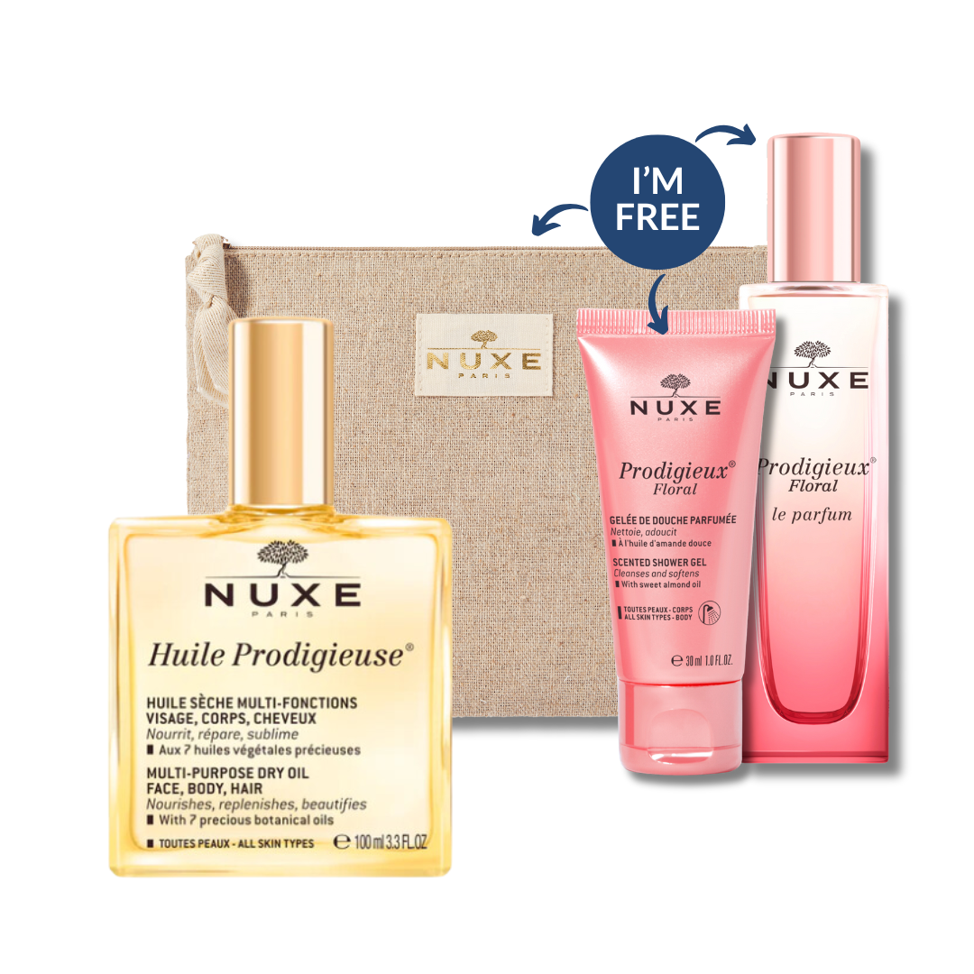 Receive a free travel bundle worth €25 when you purchase NUXE Huile Prodigieuse 100ml